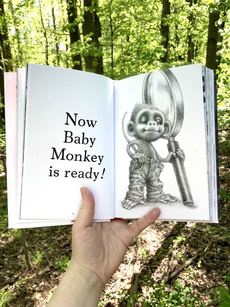 T Rex got Baby Monkey, Private Eye by Brian Selznick and David Serlin for his 3rd Birthday. It is a graphic novel about a baby Monkey, who solves cases, if only he can get his pants on fast enough to catch the crooks!