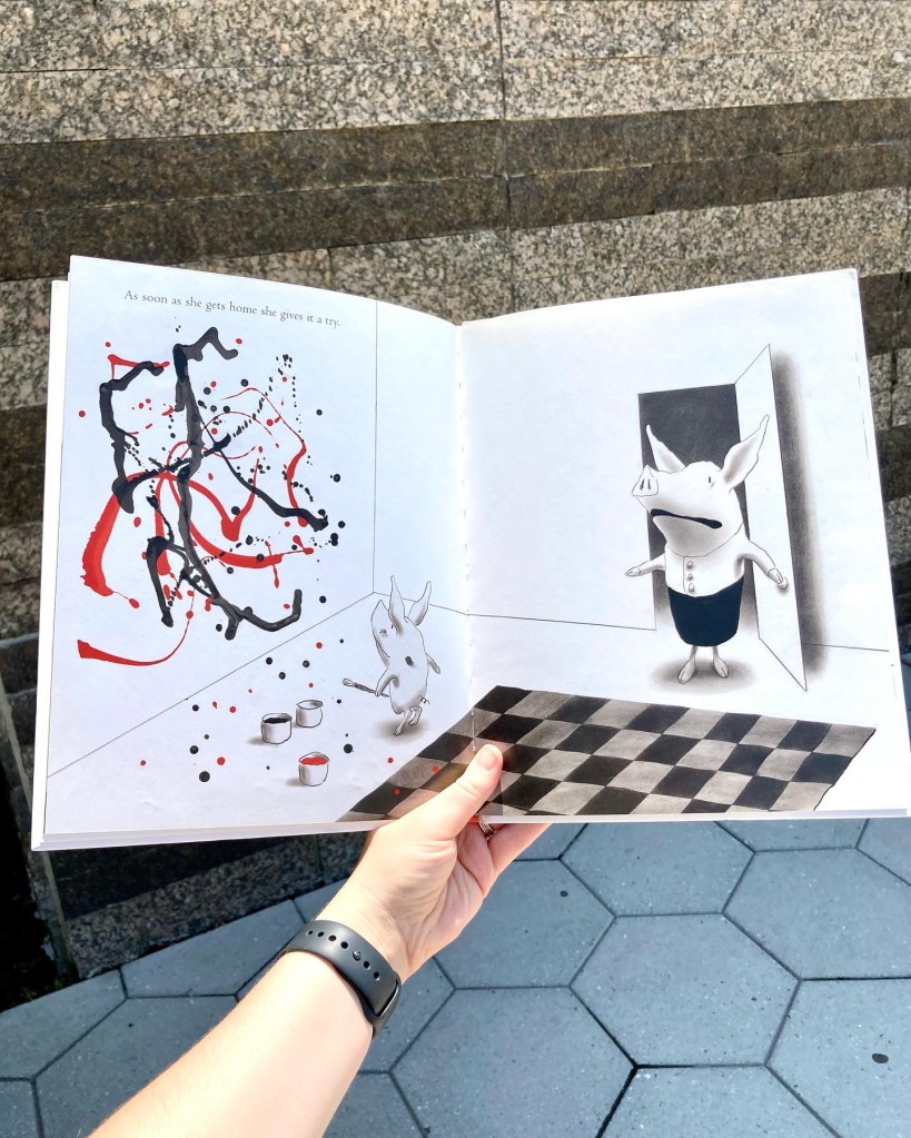 OLIVIA by Ian Falconer, a Caldecott Honor book! Our favorite, spunky pig 🐷 is here to tell you she could paint like #jacksonpollock if she wanted. 🎨