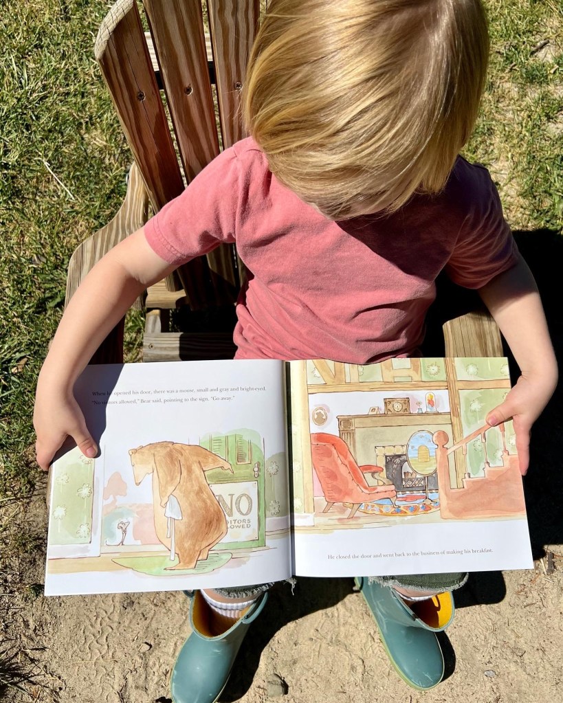 The illustrations are soft and cheerful and friendly. And the mouse 🐭 is so “small and gray and bright-eyed.” Who could turn him away? 🧐